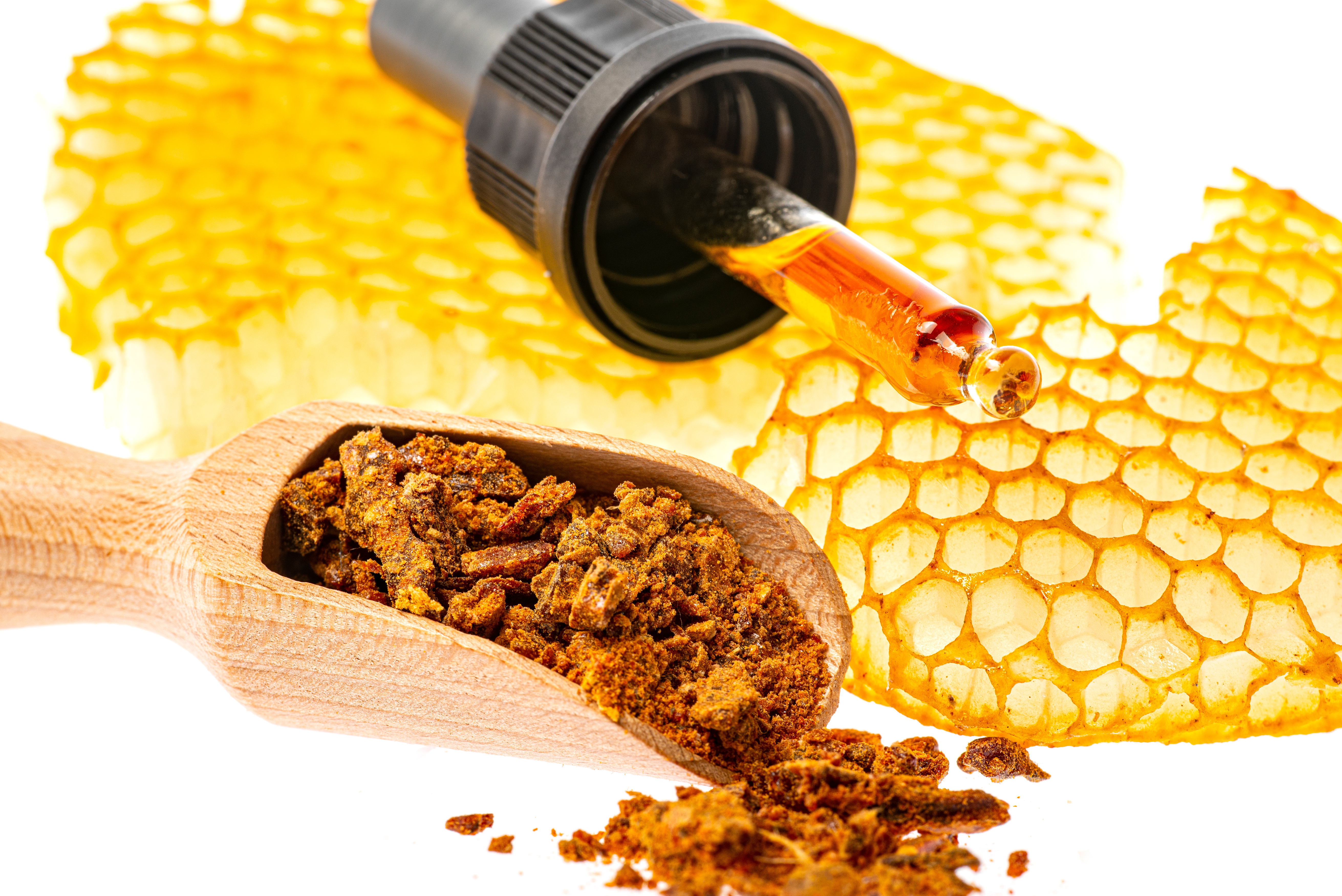 Propolis ist ein wahres Naturtalent. Mit seinen vielen positiven Eigenschaften ist es das Schutzharz der Honigbiene und wirkt im Bienenstock natürlich antibakteriell, antiviral sowie fungizid.